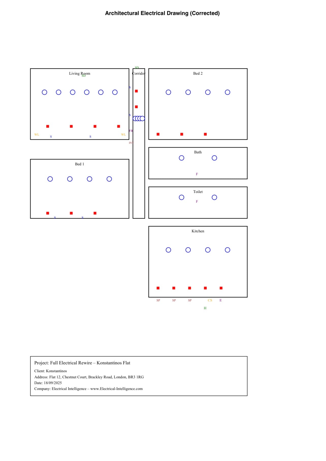 Booking deposit for full rewire at total £2850. Payment: £855. Covers booking, cables, sundries,